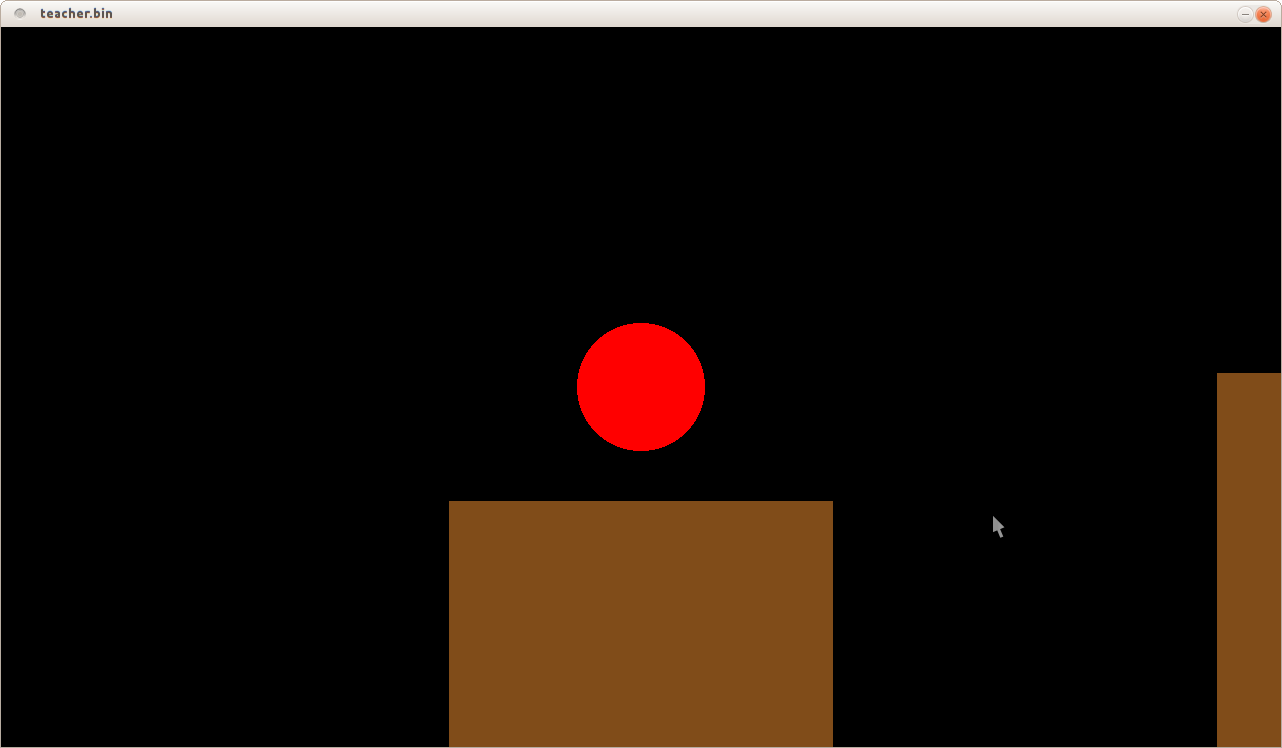 The screenshot may not look like it, but in the first 10 hours of the competition I implemented a 2d platform engine. The red circle is the player, who can run and jump and collide with the brown walls.