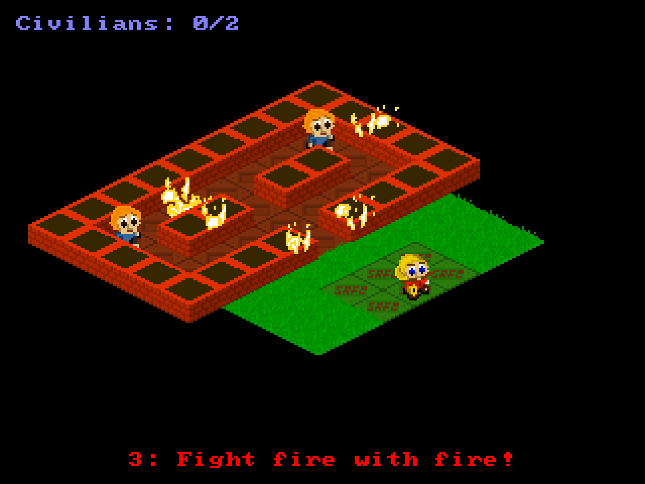 I am done. This isn't my best entry, I think, but it is reasonably solid. I had a lot of trouble coming up with an idea, and had to take a few liberties with the rules. The biggest mistake I made was making this an isomatric tile-based game, which always takes forever due to compilcated tile movement code and the requirement for tons of graphics (the civilian graphics are particularly atrocious this time around). I'll try not to repeat this mistake again.